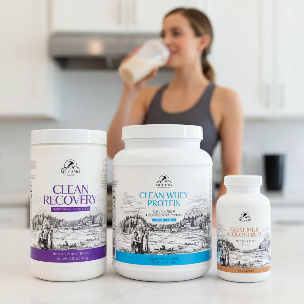 We know everyone’s needs are different, so our nutrition is designed with purpose. Need quick recovery? Choose our fast-digesting whey. Looking for steady fuel? Our whole-milk protein provides a balanced release. Want to strengthen your foundation? Colostrum, minerals, and ghee round out your real-food pantry. Whatever your lifestyle, Mt. Capra has a clean, effective way to support it.